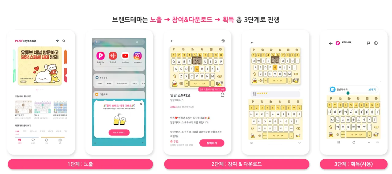 9월에는 서비스의 새로운 유형의 상품(브랜드테마)를 런칭했는데요. 플키러(플러에키보드 사용자)가 특정 페이지에 방문하거나 SNS 팔로우/구독하면 테마를 리워드로 제공하는 미션형 상품이에요.