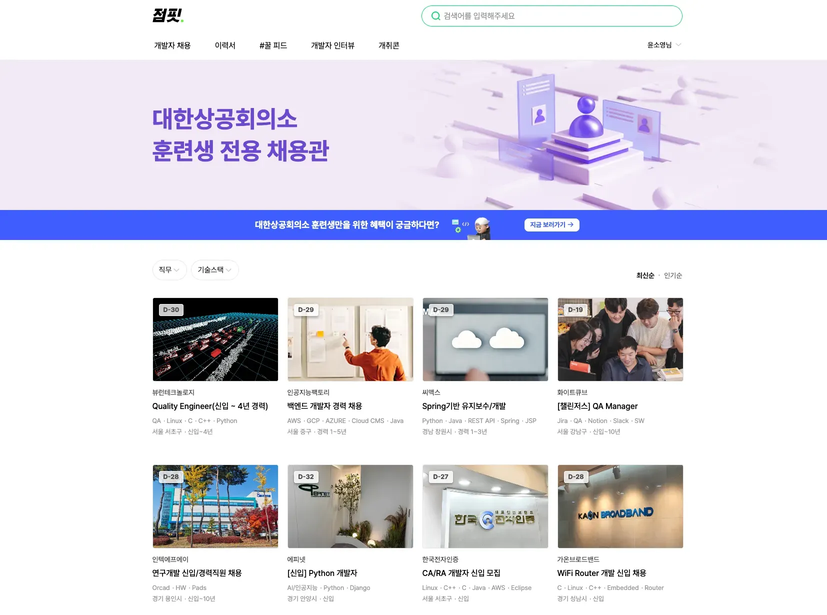 인증 완료된 훈련과정에 맞는 직무의 채용공고를 점핏에서 쉽게 탐색할 수 있도록 모아놨어요!