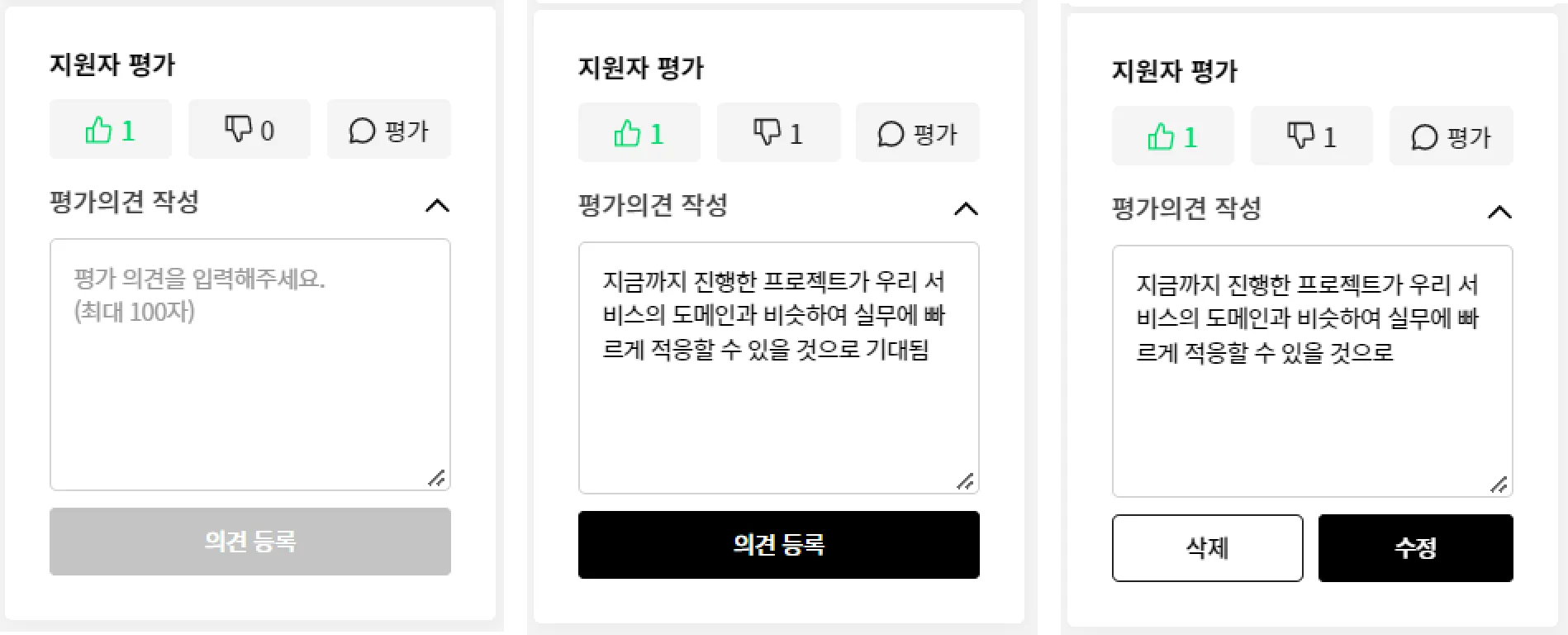 의견을 등록한 후에 평가 의견을 수정 및 삭제할 수 있습니다.