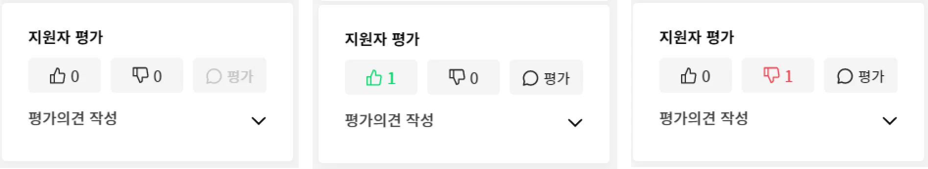 중 하나만 선택할 수 있으며, 한번 더 클릭하면 평가를 취소할 수 있습니다.