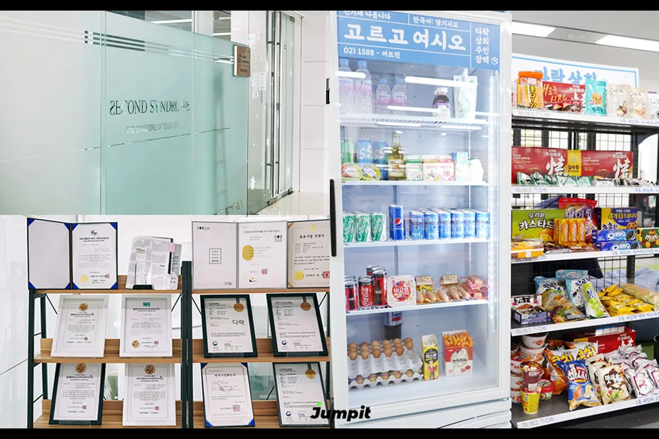 (좌)사무실 내부, (좌)상장 진열장, (우)스낵바