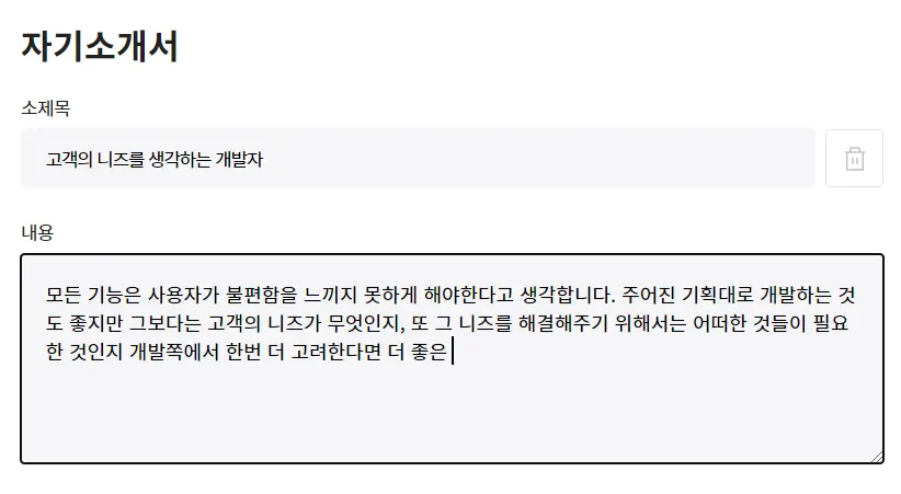 간략하게 자기소개 작성하실 수 있도록 자기소개서 항목이 추가되었답니다!!