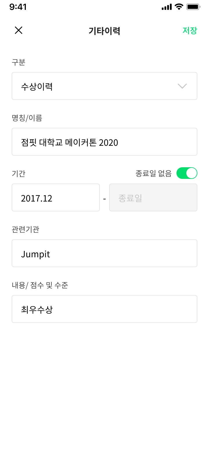 점핏이 이번에 키운 그릇에는 여러분의 여러이력을 담을 수 있는 '기타 이력'이 추가되었습니다.