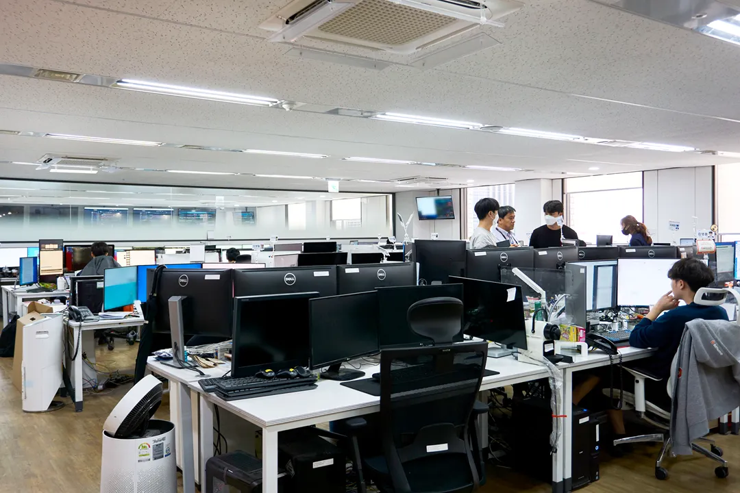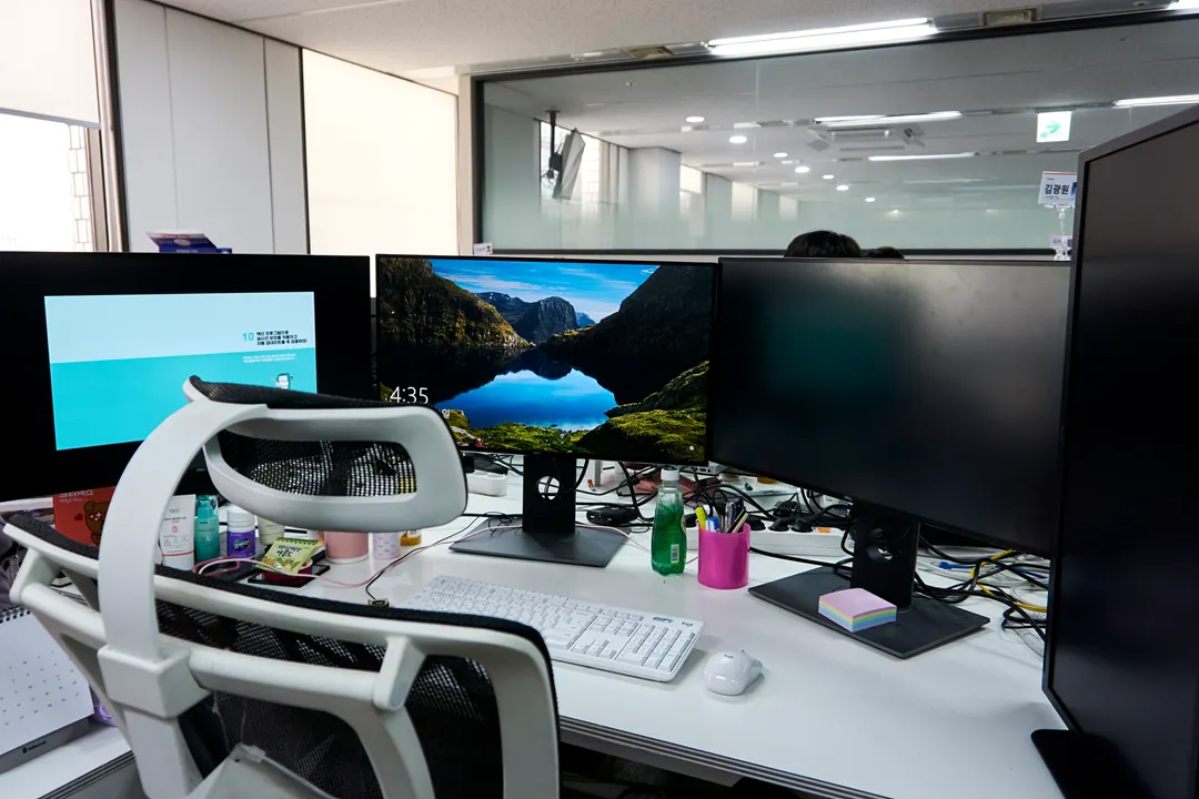 아침 출근하면 하루일과를 점검하고 업무개시 와 동시에 스크럼을 통해 회사동료들과 업무진행사항을 공유 하는 자리를 가집니다.
