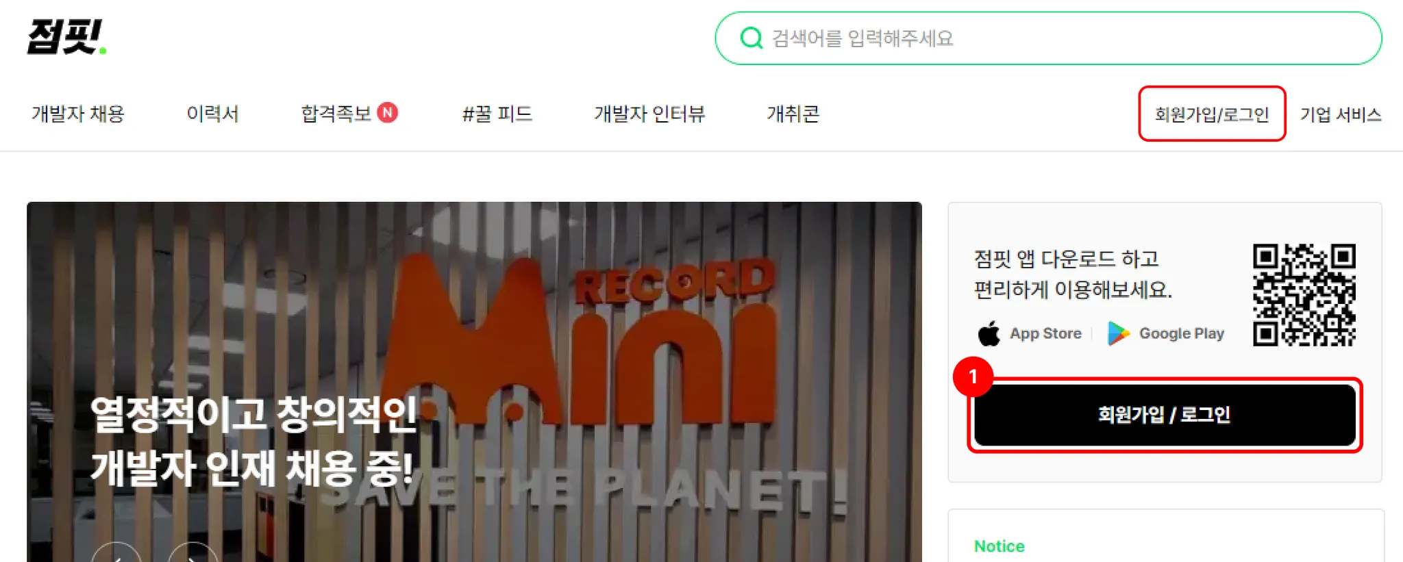 사람인 계정과 통합해야 점핏 서비스를 이용할 수 있어요.