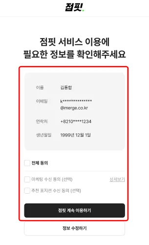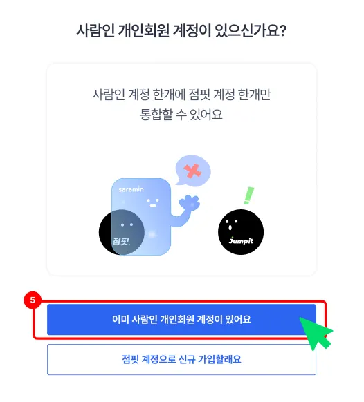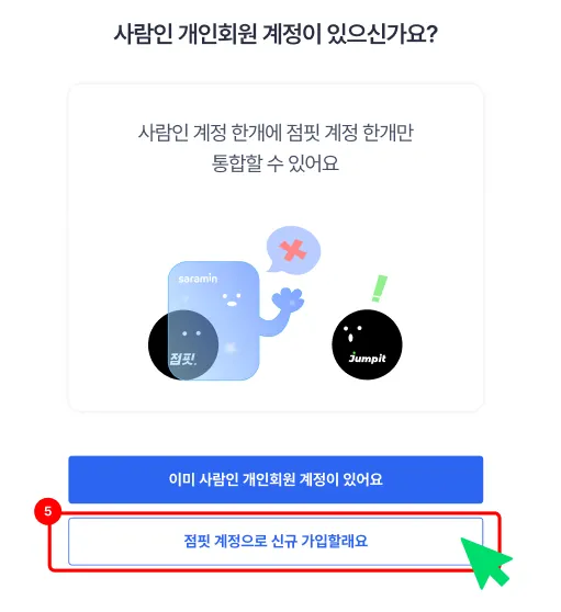 ③ 새로 가입된 사람인 아이디와 점핏 계정 통합 완료