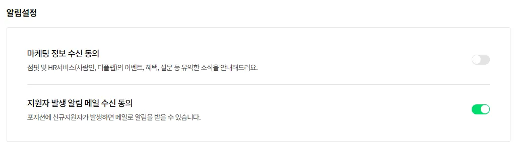 계정관리 > 지원자 발생 알림 메일 수신 동의
