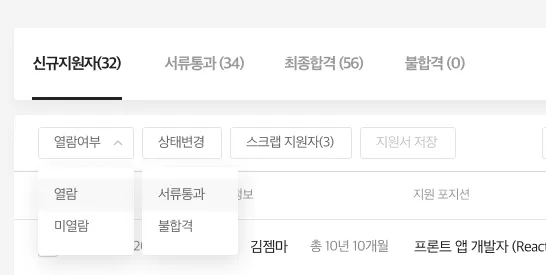 열람/미열람 : 열람여부 지원자만 모아볼 수 있습니다.