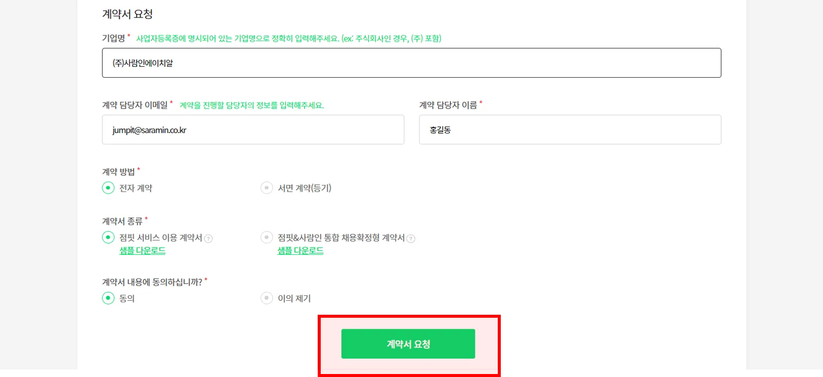(실제 계약 체결하는 담당자 정보로 기입해주세요.)