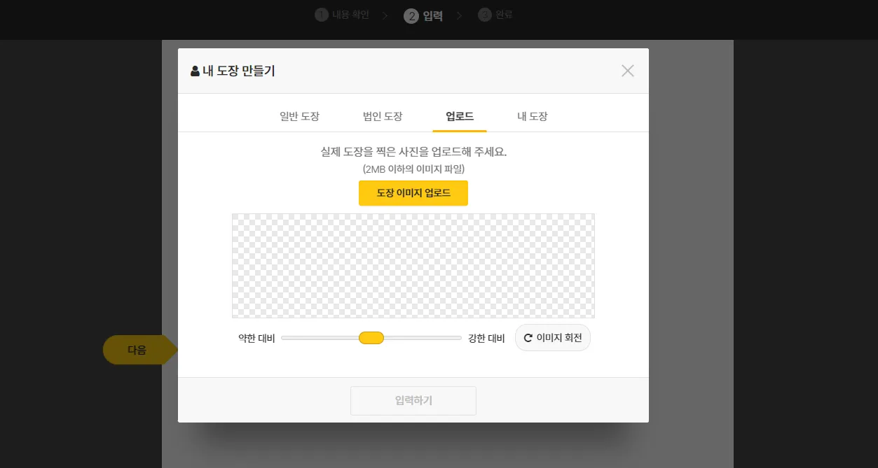 도장 입력 선택 시 ‘내 도장 만들기’ 진행
