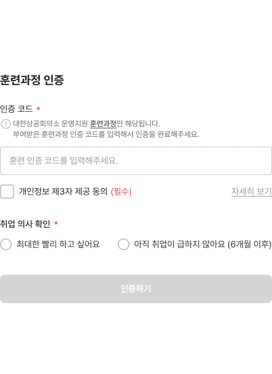 위 링크를 클릭하여 훈련생 전용 페이지에 진입합니다.